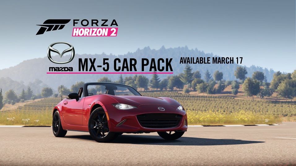In addition to the launch of the free Mazda MX-5 Car Pack, we’ll be kicking off an exciting Rivals contest for Forza Horizon 2 players on Xbox One. The Rivals contest, which begins on Tuesday, March 17 and ends on Thursday, April 30, will give Forza Horizon 2 players the opportunity to win a real-life 2016 Mazda MX-5. Once registered*, players can set a time in the “Mazda MX-5 Challenge” Rivals event in Forza Horizon 2 for Xbox One and while anyone can set a time in this Rivals event, only registered players’ times will be eligible for prizes. For full rules and conditions for this contest, please see http://rules.xboxpromotions.com/mazdatimetrials.