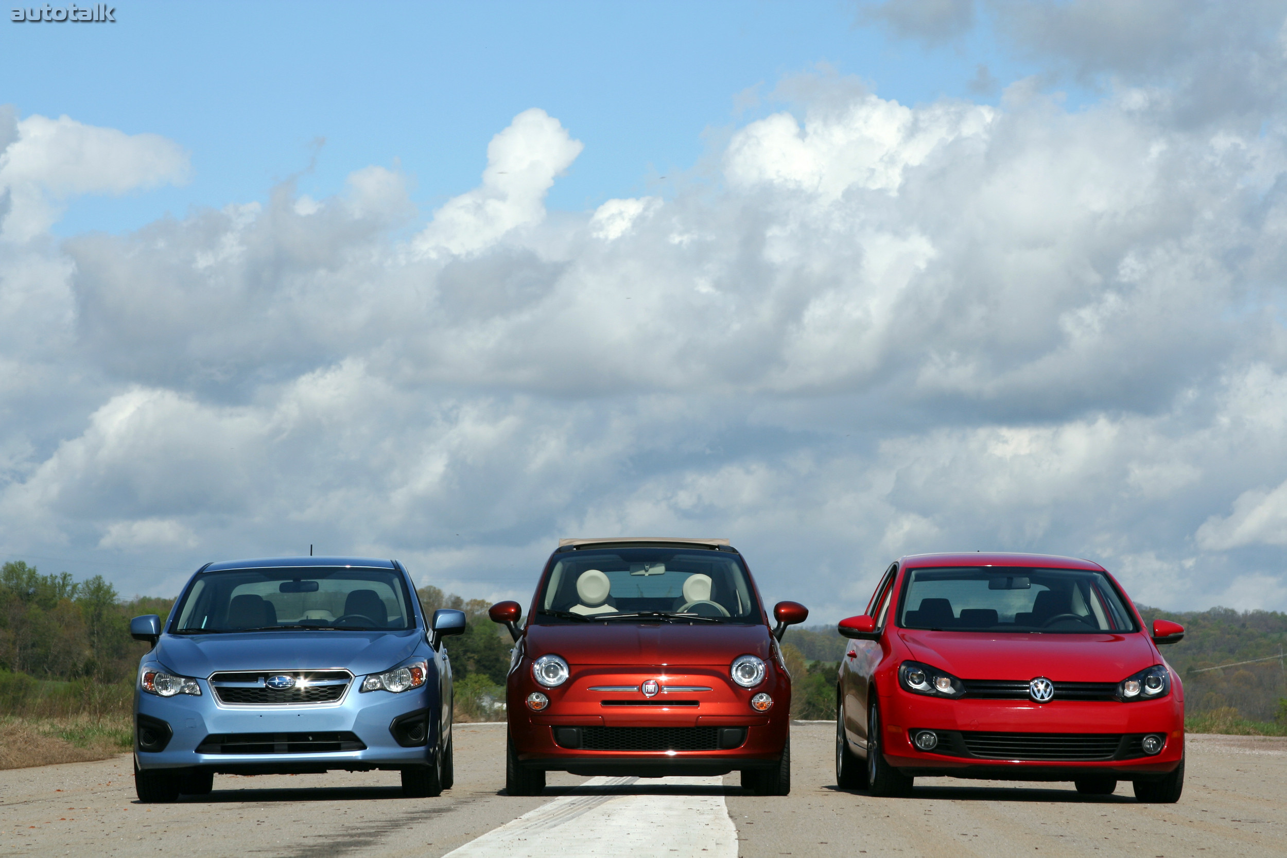 It is also hard to split them on driving dynamics. The Golf has the best ride handling compromise, but the Fiat is more fun to drive. The Subaru has the added safety of AWD which can be a very important factor depending on where you live.